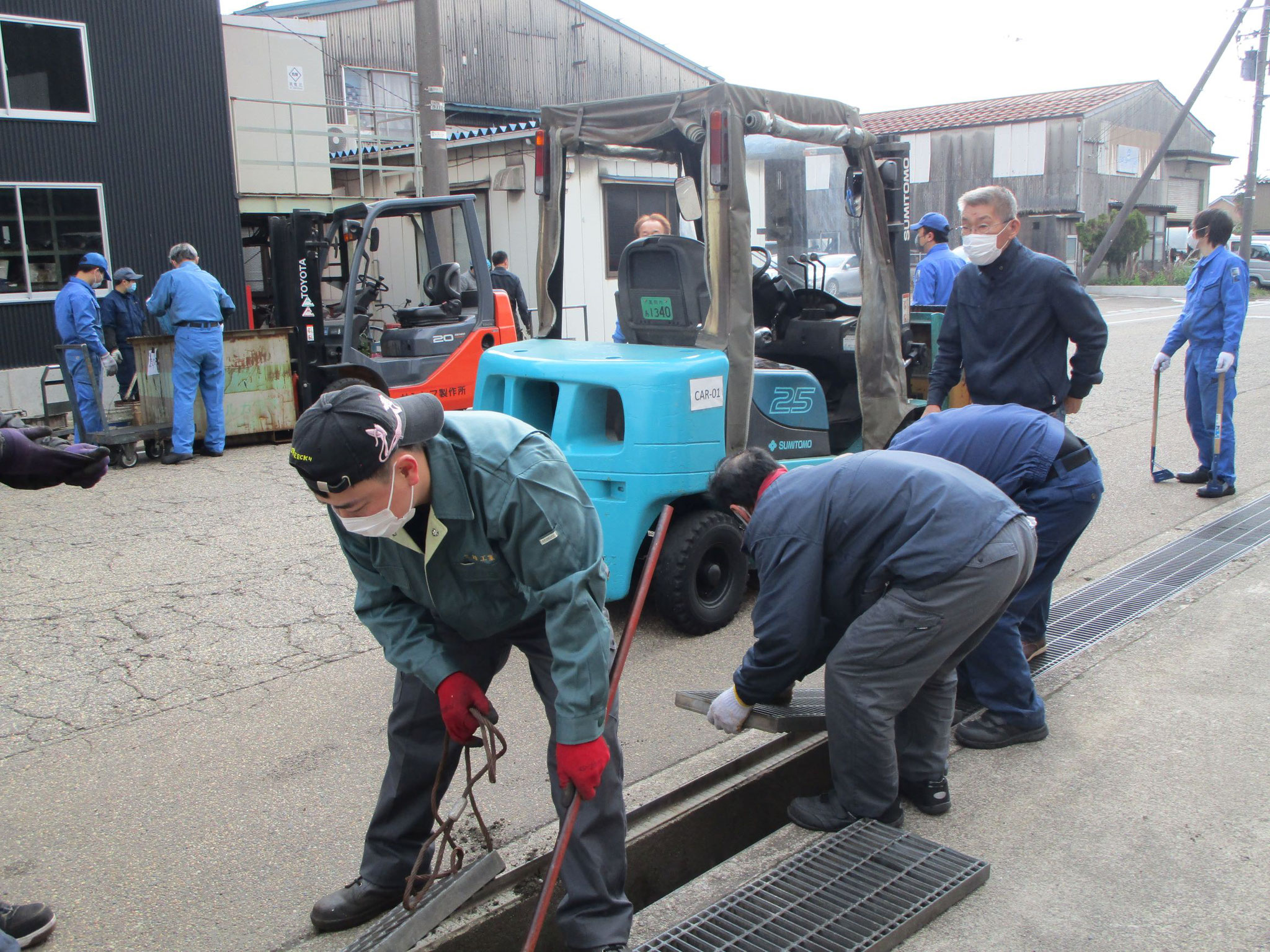 毎年恒例の、協同組合福岡金属工業団地合同での「一斉みぞ掃除」を開催。 全社合わせて、90名程参加。自社前のみならず、共有部分や他社前も全社で協力しながら、声かけあっての連携作業のお陰で、例年よりも早く終わりました。幸いお天気も良く、溝も綺麗になり洪水対策上も安心です。 皆様、早朝より大変お疲れ様でした。