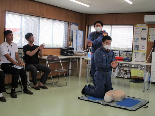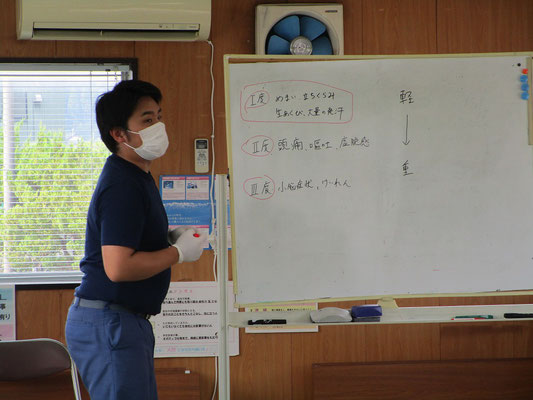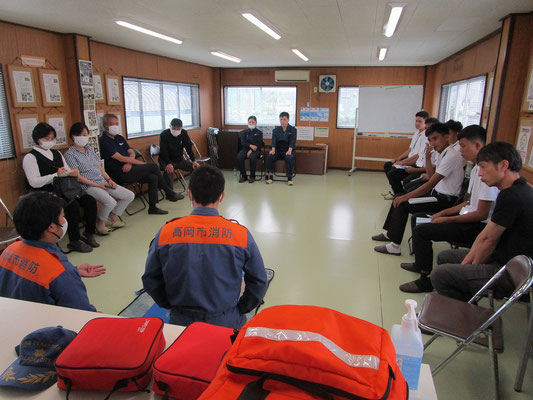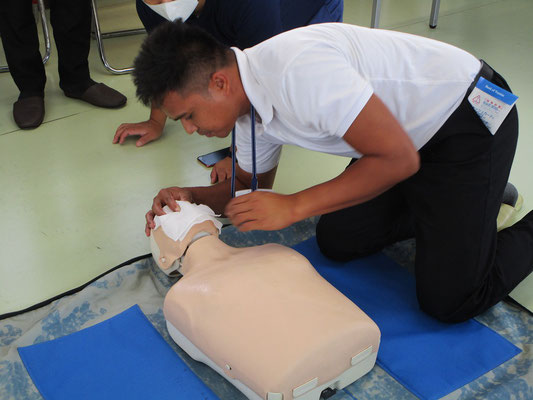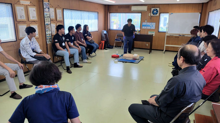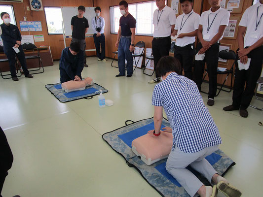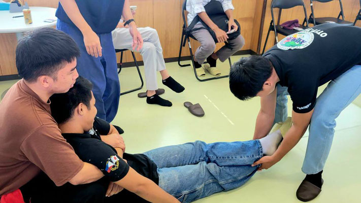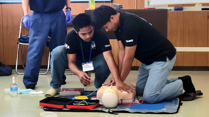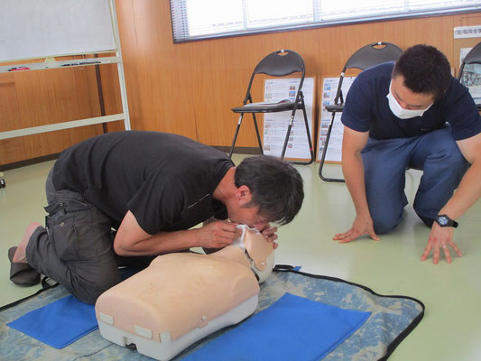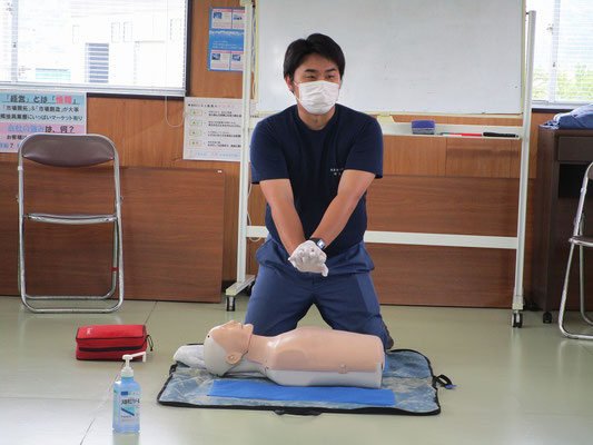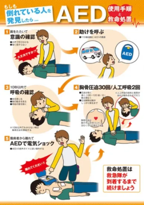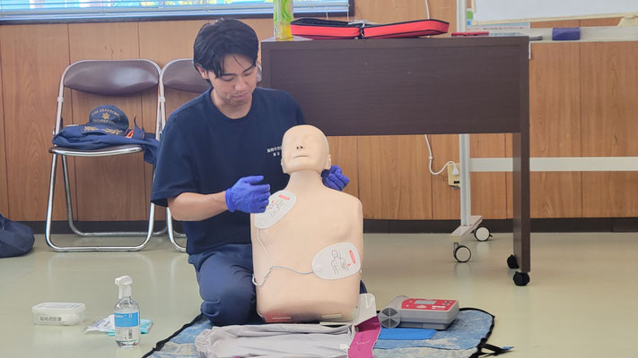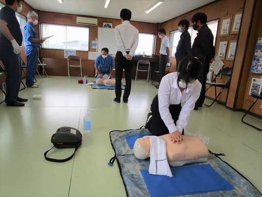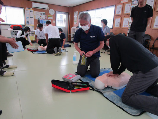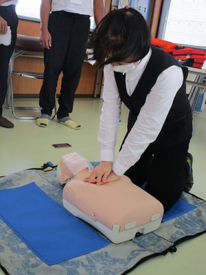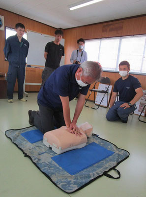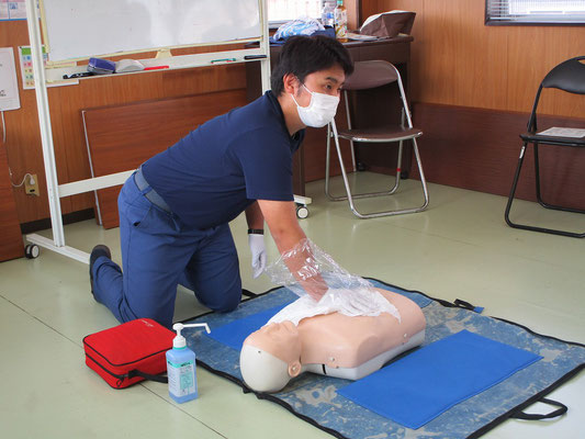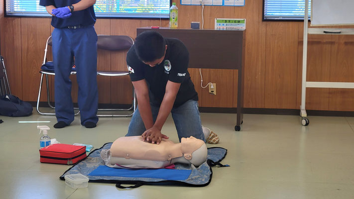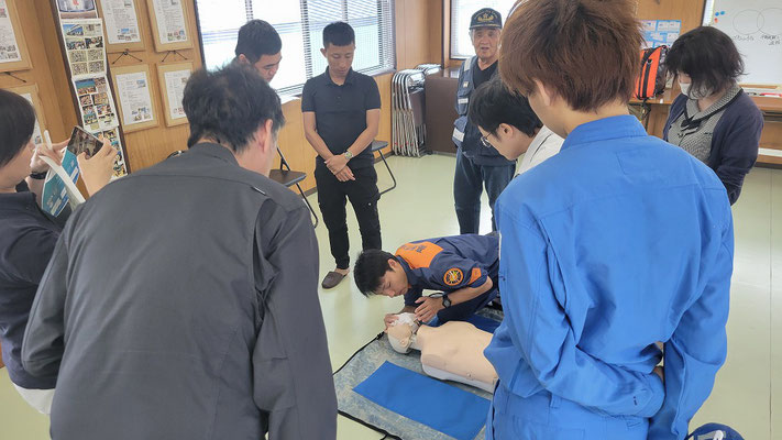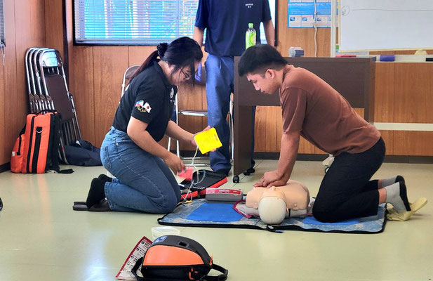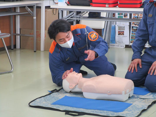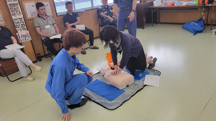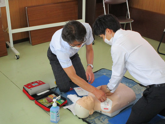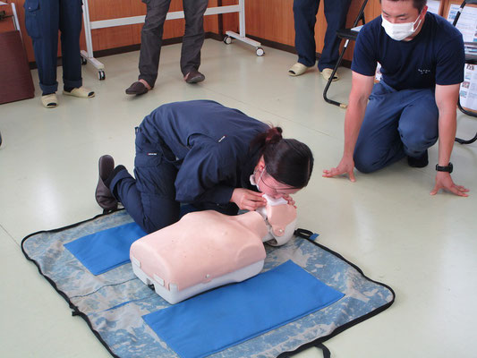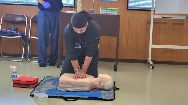 救急救命講習・AED操作講習・熱中症対策・止血法・緊急時の搬入法・脳梗塞などの対応見分け方・身近にある物での搬入・対策、備蓄その他、毎年少しづつテーマを変えながら訓練しています。