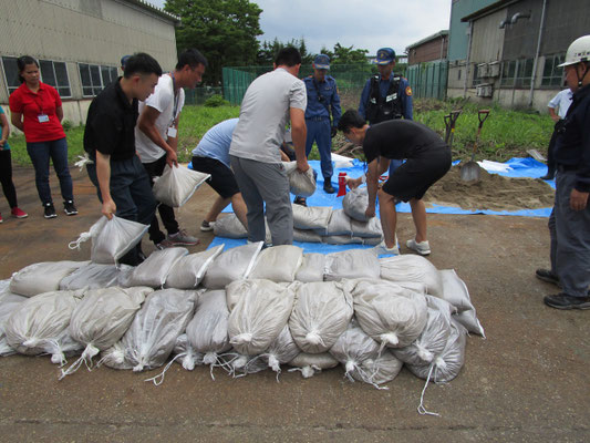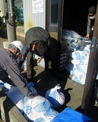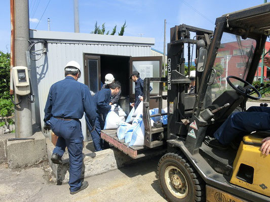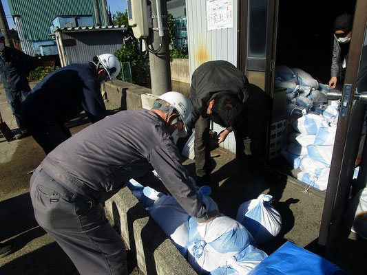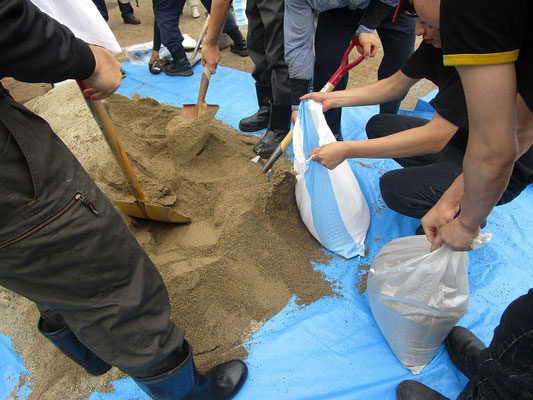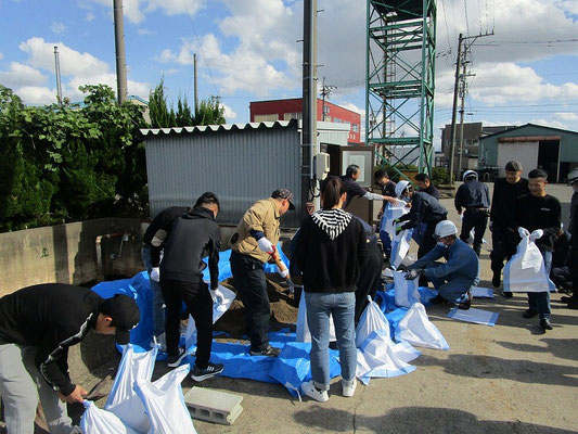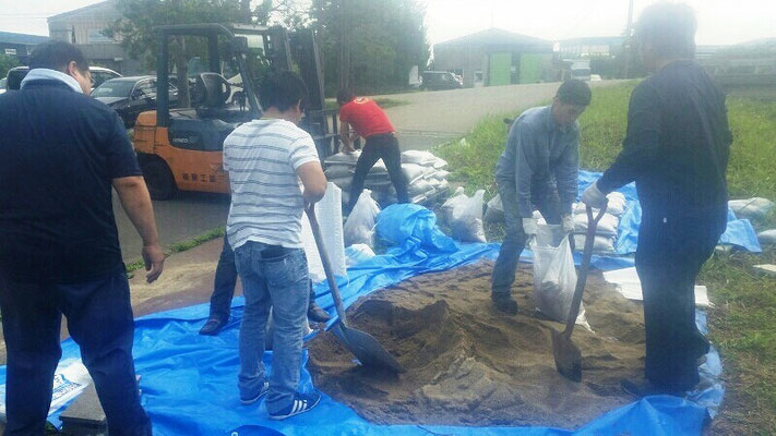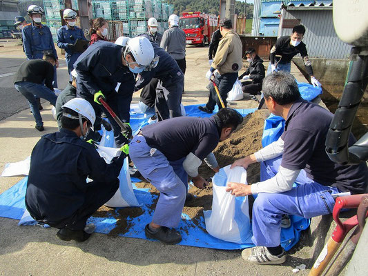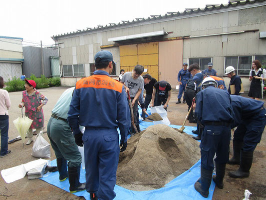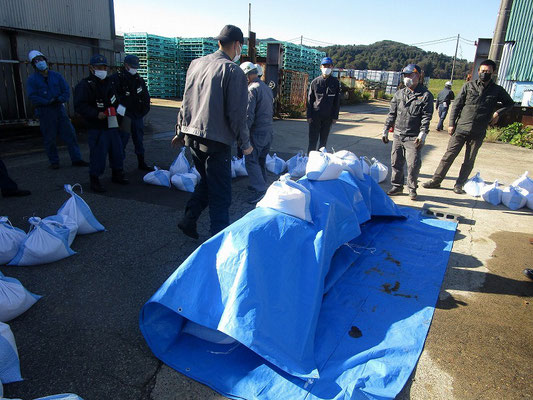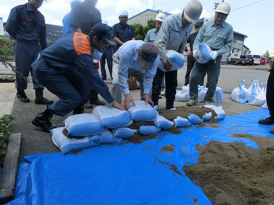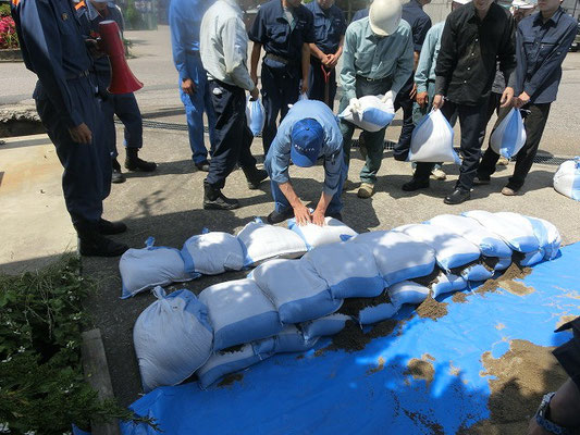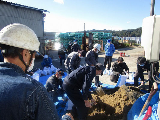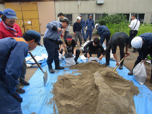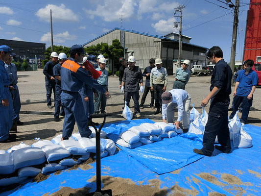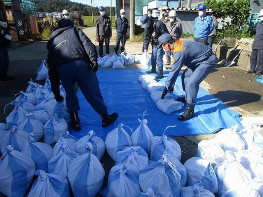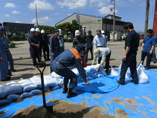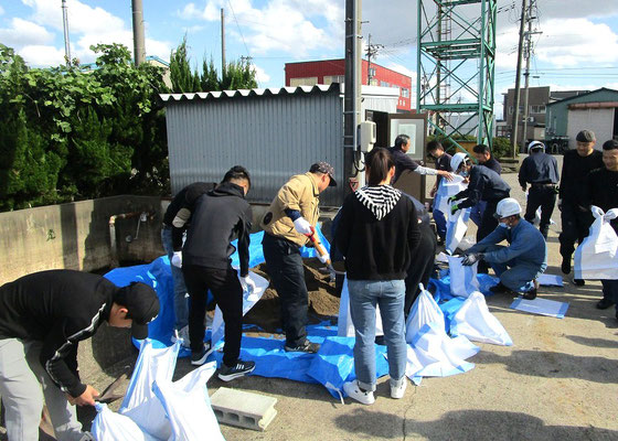 通報避難訓練・消火器訓練・土嚢づくりなど、毎年恒例行事として行ってます。