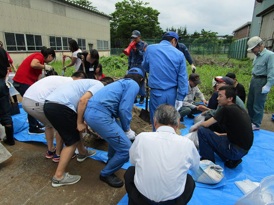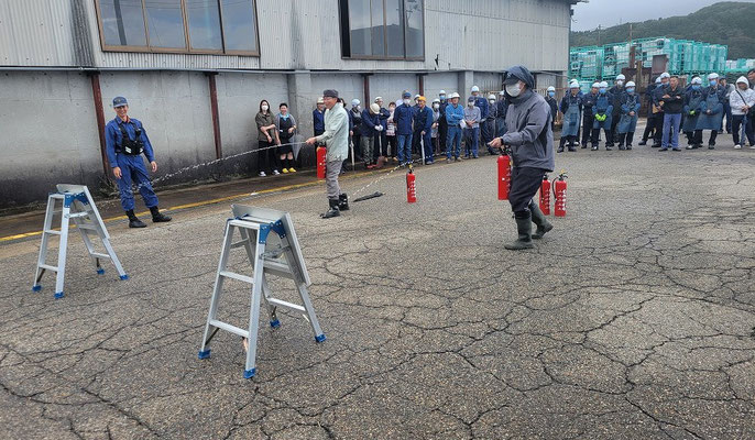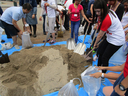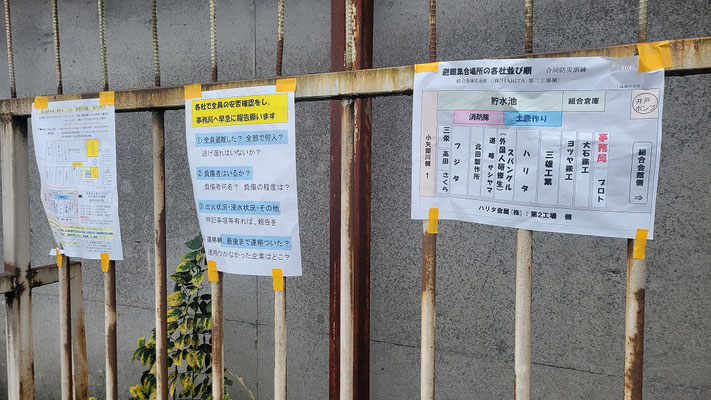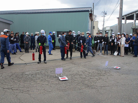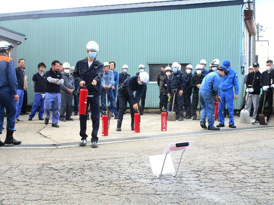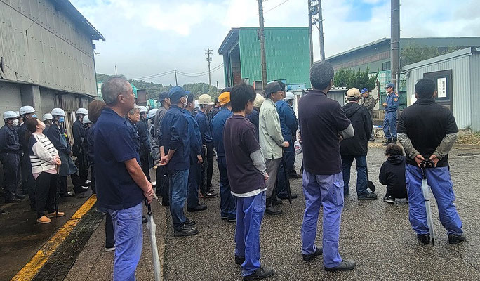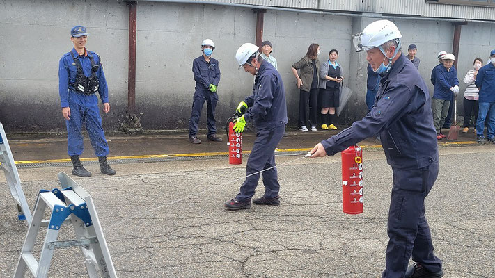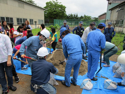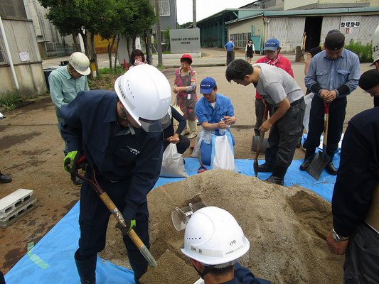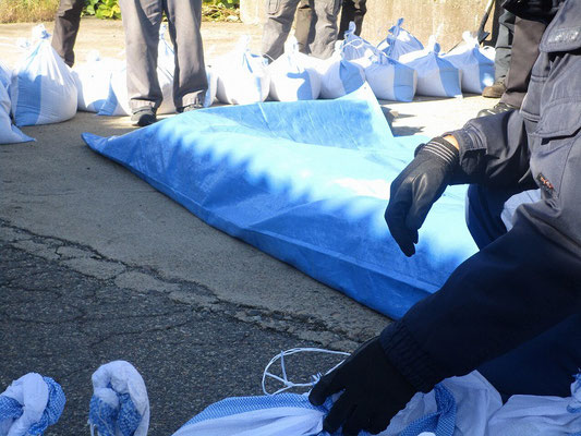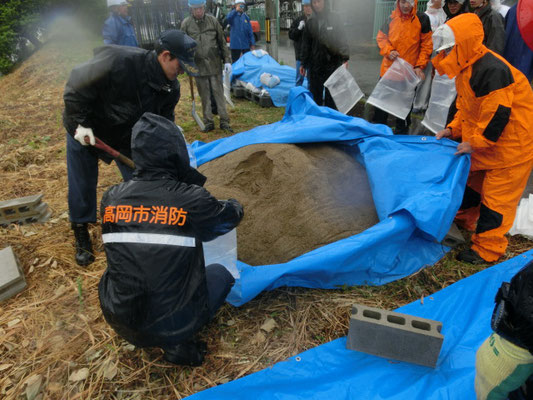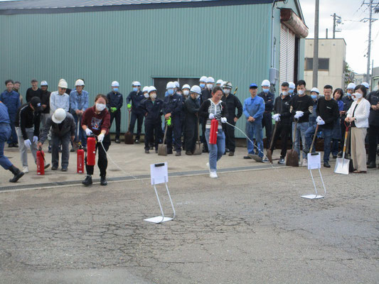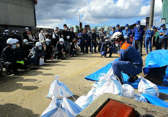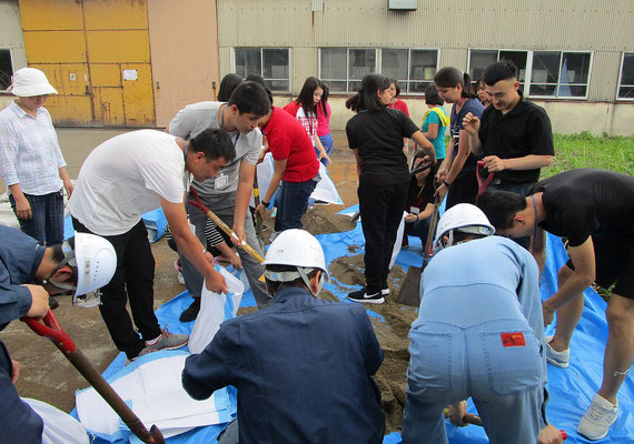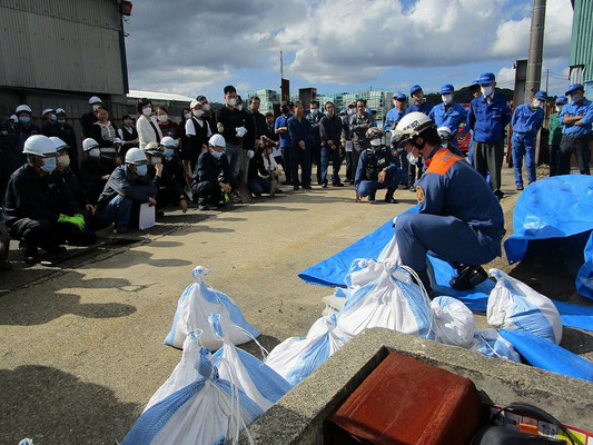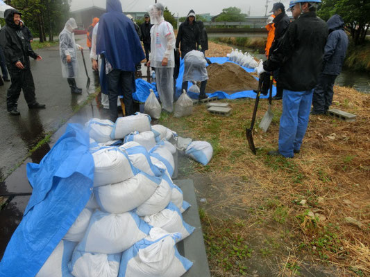 通報避難訓練・消火器訓練・土嚢づくりなど、毎年恒例行事として行ってます。